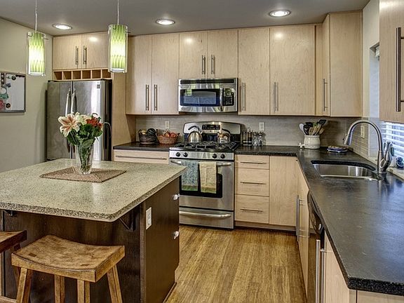 Extremely well done & nicely kept Fremont Townhome. Features a rare blend of chic design & eco friendly materials, sophisticated colors & high quality finishes. Pre solar ready, low VOC paints, bamboo floors, non-formaldehyde insulation, dual flush toilets, concrete & recycled glass countertops made locally, gas fireplace, gas hydronic heat/stove, large patio area, still under builders warranty, near bus lines #28 & 40 (Downtown & Ballard). Close to PCC, Sunday market, restaurants & coffee shop.