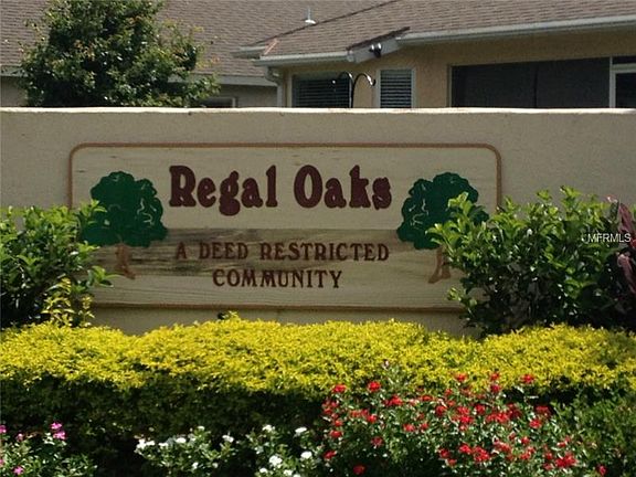 This Diamond Builders Topaz model, 13 year young family home has been well maintained and cared for. It is on the open lake with a western exposure. It has a totally new HVAC system within this past year, also newly painted inside and outside, a new hot water heater, new laminate flooring in the Dining Room, and whole house new carpeting. The great-room Kitchen has granite countertops, a hot-water tap and a closet-pantry. There are ceiling fans in all major rooms. It is being sold unfurnished, but all the appliances and blinds stay (not the draperies). There is a screened front entry porch and a foyer entry into the Living/Dining Room combination. The large Master Bedroom suite is on the left. The tile Kitchen opens to a tile Breakfast nook and the tile Family Room. All of these rooms have sliding glass doors that open to an 8 x 20 covered lanai, which opens to the 12 x 24 A-frame caged and screened lanai. The flooring in the lanai area is rubberized-carpeting. All of this looks over the vast, open lake. The two guest bedrooms with the 2nd bath are on the right, off the Family Room. There is no pool on property, but ample space to add one. The community pool is within walking distance though. There is a 6 x 6 laundry room, which opens to the two-car garage. Regal Oaks was built in 2001 and has 120 homes in a residential family neighborhood setting very close to shopping, the new Town Center Mall and close to I-75. The HOA is self-managed and meets once a year every March. The annual dues are only $425.