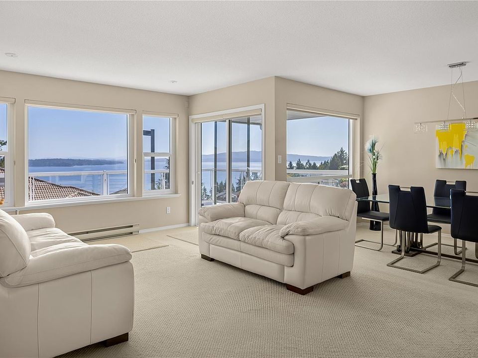 Enjoy south-facing OCEAN VIEWS in this GATED GOLFING COMMUNITY. Located in ARBUTUS RIDGE, this beautifully maintained 3-bed, 3 bath plus den home offers panoramic ocean views. You'll be drawn to the view in the living room through the large picture windows leading out to a spacious deck on the main level. On the left is a large primary bedroom, with sumptuous custom 5 piece ensuite bathroom. On the view side of the home is the second bedroom, a den with built in daybed and a 4-piece bathroom. The large living room and formal dining room are situated on the view side of the home. And, on the right is a beautiful open concept kitchen, breakfast area and a laundry/mud room with direct access from double car garage. Downstairs is a spacious recreation and media room, third bedroom with its own 4 piece ensuite bathroom and fabulous storage area. All of this is just short walk to the community rec centre where there is a cafe, swimming pool and activities organized by the community.