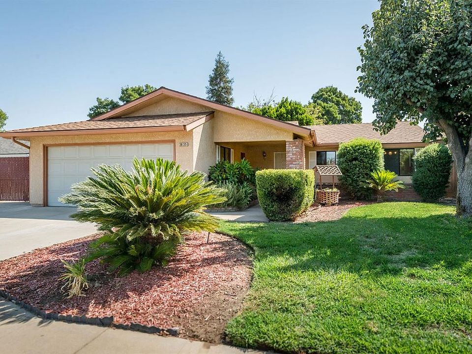 Charming, well-maintained, Clovis home; nestled in a quiet, established neighborhood, offers beautiful landscape, newer roof, newer HVAC unit, and fresh paint. From the open kitchen, you can see into the spacious living room with brick fireplace. The sliding glass door leads you out to the large, covered patio and well manicured yard. Bedrooms are all generously sized. Master bedroom features walk-in closet and over-sized master bathroom. Indoor laundry with storage space. The perfect area, size, and layout at an affordable price. Schedule your showing today!
