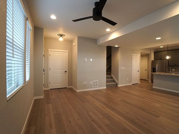Amazing new 3 bedroom, 3 bathroom townhome with two car garage in District 49! Covered front entry and amazing mountain views from inside! This townhome was a former model and has an abundance of upgrades! Main level boasts open flooring plan with abundant natural light! Main level also features a large living room, kitchen, dining room area, and bathroom. The open kitchen includes stainless steel appliances, gas cooktop, large pantry closet, breakfast bar and granite countertops with glass tile backsplash. The upper level has a large master bedroom with walk-in closet and spacious bathroom with double vanity, two additional bedroom, hall bathroom, and a separate laundry room. Central air conditioning for those hot summer days. So many amazing upgrades! Located near shopping, parks, schools. This home will go fast!