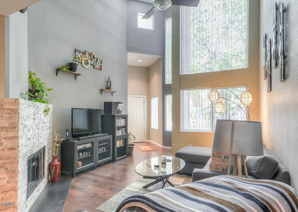 [AS OF AUG 12th, THIS HOME IS STILL AVAILABLE!] Stunning three-story townhome situated in a gated community offers an exceptional living experience in the highly sought-after Midtown area. This remarkable residence features a private 1- car garage (reserved uncovered space for 2nd car included) and is conveniently located just minutes away from the Light Rail, Melrose District, and Park Central. The townhome boasts a unique layout with two split master bedrooms, each located on a different floor, providing optimal privacy. Both bedrooms are complemented by spacious walk-in closets, and an open loft area adds a versatile space to the home. The interior showcases beautiful wood floors, creating an inviting atmosphere, and the bright open floor plan is enhanced by two private balconies, perfect for enjoying the outdoors. The modern kitchen is equipped with stainless steel appliances, granite countertops, and sleek white cabinets. The living space is enhanced by a beautiful stone fireplace and soaring ceilings, while updated light fixtures and ceiling fans add a touch of contemporary style throughout the home. A full-size washer and dryer are conveniently included. Residents of this community can indulge in a range of amenities, including a heated pool, relaxing spa, well-equipped fitness center, and a recreational room. [NOTE: HOME COMES UNFURNISHED - tenants are in the process of moving out] Contact via email or text for a video link to explore the home virtually, or to arrange a personal viewing. Water, sewer, trash and HOA dues are included in the rent. 12 month minimum lease.