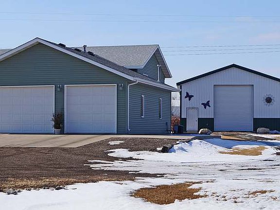 OPEN HOUSE 1:30-2:30 ON 4/8! If you are looking for BEAUTIFUL home that has it all plus a massive mudroom w/laundry & bath when you enter this gorgeous home! This 2634 sqft home has a 1536 detached garage with 14ft high garage doors, it's two homes for the price of one! The pristine setting gives you the privacy with all the trees, acreage you've been looking for, parking pad, while still being a quick drive in to Harmon Lake and the big city. The kitchen has custom cabinets, huge center island & high end stainless steel appliances. The living room has daylight windows, vaulted ceilings, door leading to the lg deck overlooking the prairie and so much more. This home has 2 bedrooms up with a bathroom suite with corner whirlpool tub, separate shower and dual sinks. There are two additional bedrooms lower lever with large family room for entertaining everyone. This home attached 3 stall tandem heated garage, lots of storage, window for sunlight & plus a detached dream garage!