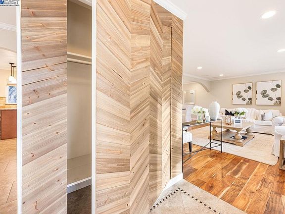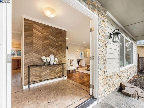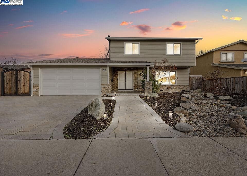 Welcome to this beautifully upgraded home that perfectly blends style and functionality. The kitchen is a chef’s delight with granite countertops, a stone tile backsplash, a walk-in pantry, and two pass-through windows with roll-up screens leading to the outdoor built-in BBQ area. Elegant crown moulding and custom cabinetry throughout enhance the sophisticated interior, complemented by hand-scraped wood floors. The master suite features mirrored closet doors with an organizer, while the luxurious bathroom offers granite countertops and a spacious tiled shower with dual shower heads, including a waterfall feature. The family room centers around a cozy fireplace, making it perfect for gatherings. Additional features include electric blinds and a tiled entryway. The exterior is just as impressive, featuring a backyard with a main gas line for a BBQ and the waterfall - fire pit combination feature, pavers throughout, beautiful landscaping, and an outdoor shed with side yard storage. The garage offers built-in shelving while the entry and driveway are accented with pavers. The home’s exterior includes Hardy board weather-resistant siding and stucco mixed with durable paint. Conveniently located next to a park, this home provides additional recreational space.