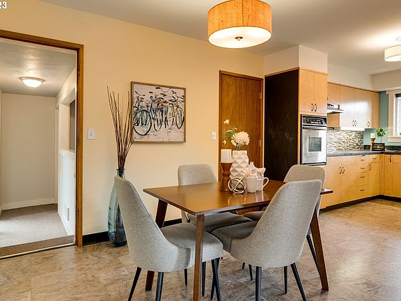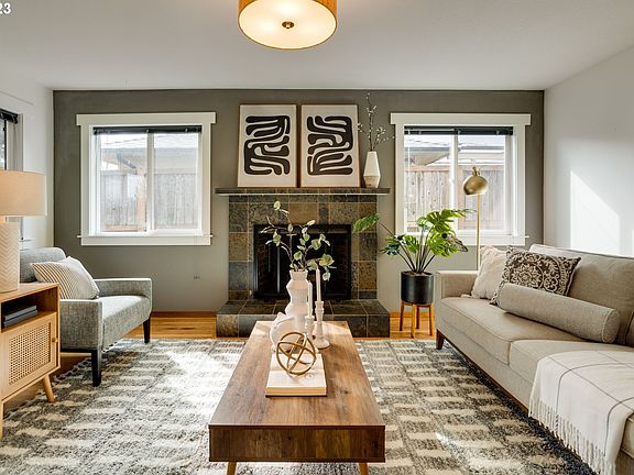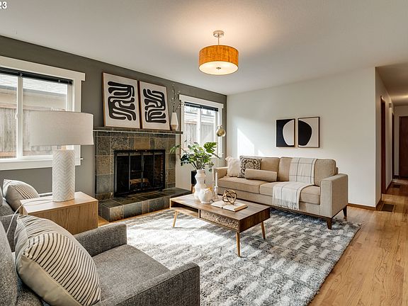This stunning, light filled mid-century will have you swooning. On the main, enjoy the lovely living room w/ fireplace, 3 spacious bdrms, dining, & hrdwd floors. Updated kitchen w/ ample counter space, storage, & SS appliances, & induction stovetop. Large, finished bsmt w/ 2 bdrms (w/ egress windows), bath, laundry, family, & bonus room. Attached garage, covered patio & outdoor space w/ fenced yard, & garden beds. Recent updates incl: roof (2022) and HVAC (2019). Great location! [Home Energy Score = 5. HES Report at https://rpt.greenbuildingregistry.com/hes/OR10207379]
