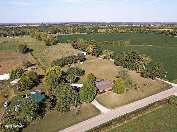 This 3 bedroom, 2 bath brick ranch offers over 2,072 sq. ft. of finished living space on a versatile 7.05-acre mini farm just off the BG Parkway, with easy access to Louisville, Lexington, and Bardstown. The home features a kitchen, living room, and bedrooms on the main floor, with a finished basement that includes a den, laundry, storage, and a 1-car garage. Outside you'll find a detached garage, shed, and a 36x36 pole barn with two lean-tos (20x60 and 15x36) with water and electric, an auto water feeder, and 5 acres of fenced barn lot—perfect for animals or hobby farming. The property is set up with multiple hydrants, an extra septic system, and county water hook-up for future use. Extras include a 2-car detached garage, propane backup, an outdoor wood furnace, and a large rear deck with an above-ground pool (needs liner). A practical country property with room to grow and endless possibilities.