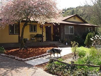 Price reduction includes new paint & carpet, new tile shower, new heater & ducting (2011). Heritage Oaks and seasonal creeks with a peaceful sitting area by a waterfall make these 2(+/-) acres located in the desirable Riebli Valley a country paradise. A bridge crosses the creek to the 3b/2ba original ranch home with attached 2 car garage, 3 stall pole barn, plus a red 1 stall barn with tack room and breezeway. Room for pool. RV/Boat parking