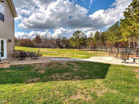 Wonderful 12 acre equestrian estate is ready for you and your horses. 3 bd/3.5 bath home w large front porch & attached 2-car garage features 2 offices, dining room, 2 story great room, half bath and Master on main w spacious master bath featuring jetted soaking tub & large walk-in shower. Second level includes a full bath & two large bedrooms. Fully finished basement ft. an office, theater room, card room, sitting room, full bath & walkout to a great wood burning fire pit to enjoy these cool Georgia evenings. Beautiful, newly built 5-stall barn w additional wash stall, tack room, feed rooms & 10x44 attached lean-to for hay storage. Estate also includes 3 out-buildings & an RV port. Its completely enclosed w four rail fence & pasture area is cross fenced.