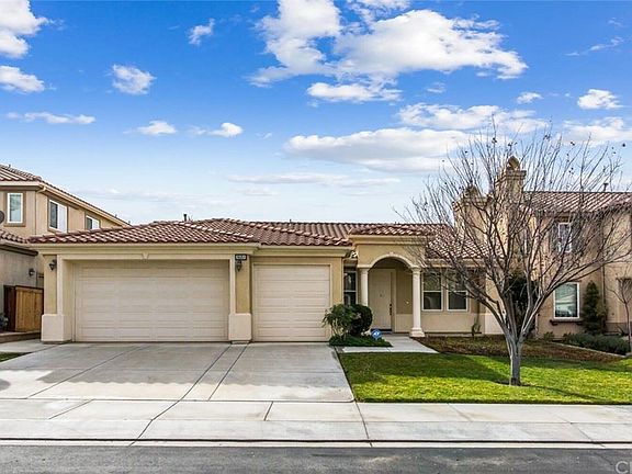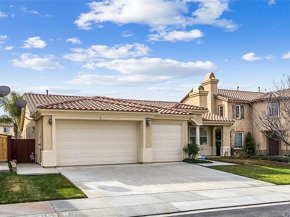 Beautifully maintained single story home in the highly desirable gated community of Tournament Hills! This gorgeous home features 3 bedroom, 2 bathrooms, plus an Office. As you enter this home you are immediately greeted by the open floor plan with high ceilings, beautiful soothing paint colors, and floor tiles laid out in a diagonal throughout all the high traffic areas. You have a formal Living Room with a fireplace for those chilly nights, the Office with built in cabinetry and a ceiling fan for comfort, formal Dining Room, and a Family Room with inset carpet and ceiling fan. The Kitchen boasts of Ceasarstone countertops, GE Profile appliances which includes a double oven, microwave hood, Dishwasher, upgraded cabinets, can lights, and a large island perfect for informal dining. Let's head on down the hallway where you will find a full bathroom with dual vanities and Ceasarstone countertops, and two bedrooms with custom closets and ceiling fans. The expansive Primary Bedroom has a patio door and is en-suite with separated vanities with Ceasarstone countertops, a jetted tub with a separate shower stall, and a huge walk-in closet! There is an indoor laundry which leads to the attached three car garage with built in cabinets. Let's check out the back yard with two Alumawood patio covers, one open lattice and one covered for year round comfort, ample yard space, and a storage shed. Other notable items are plantations shutters throughout, turnkey condition, and consistently maintained AC (serviced every 6 months). The community offers security, short walk to the private lake, picnic area, and walking trails. You are walking distance to Tournament Hills Elementary School and Morongo Golf Club. Easy access to the 10 or 60 freeways for the commuter, new shopping and dining, and local parks. You are less than 20 minutes to the Cabazon Premium Outlets and Morongo Casino and Resort, and a half hour to Palm Springs! All information deemed reliable, buyer and buyers agent to verify.