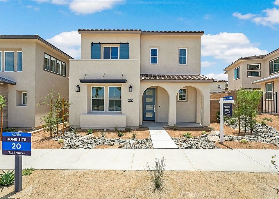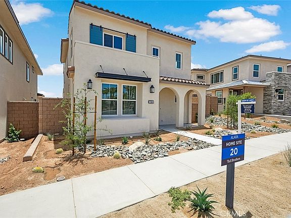 Welcome to Alara at University Park, a new community located in Palm Desert, which is close to world class restaurants and shopping. Homesite 26 is a new construction home that is situated across the street from a new state of the art community center. The Gravity floorplan features 4 bedrooms, with 3 full bathrooms, and is 2,335 sq. ft, with a 2 car garage. Upon entering the home, you will take notice of a dramatic 2 story foyer leading into the large open-concept great room and kitchen which features plenty of workspace and natural light with a central island and stainless steel appliances. There is one guest bedroom and bathroom located on the first floor with the primary bedroom located upstairs with an upgraded ensuite bath with dual vanities and a large walk-in closet. The secondary bedrooms are located adjacent to the central loft space upstairs with a shared bath. The side courtyard features room to entertain and relax with direct access from the great room through the upgraded stacking sliding door. The neighborhood amenities include a new community center with pools, spa, fitness center, pickleball and bocce ball. Homesite 26. An owned solar panel system is included. Photo provided is a rendering of the home that is under construction and exterior color schemes may vary.