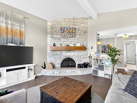 Updated kitchenDining areaVaulted ceilingsWood-burning fireplacePrimary suiteDual closetsLower level