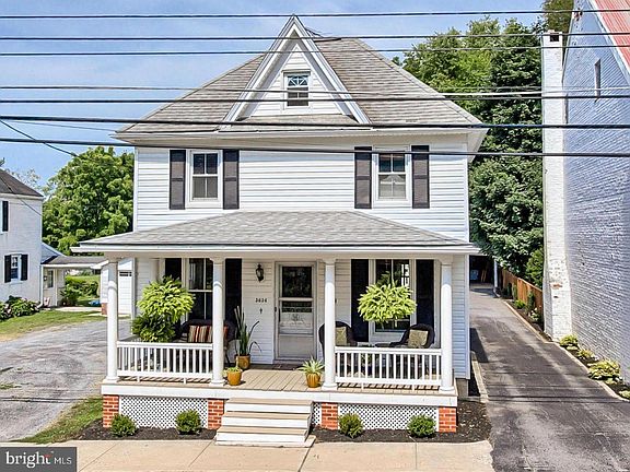 This charming home located in historic Buckeystown has tons of character and customization. Relax on the front porch enjoying views of historic Buckeystown. As you enter the home you'll notice the hardwood flooring throughout, the open concept living room, and one of a kind kitchen. The kitchen features an exposed brick fireplace and access to the main level laundry room. This home boasts large bedrooms with custom touches. The spacious backyard is perfect for yard games, gardening and relaxing by the firepit.