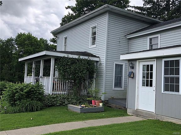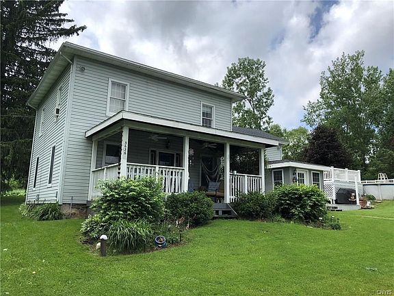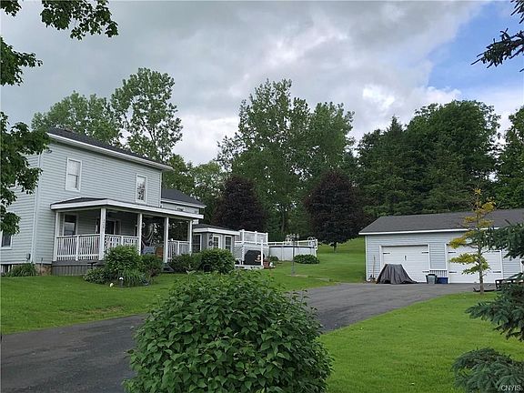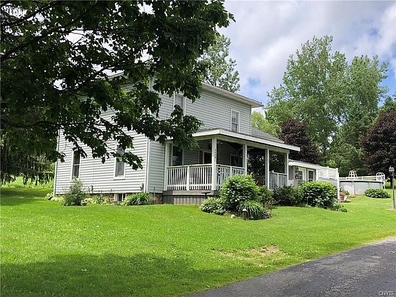 If you are looking for private and peaceful this is the place! You will love this 1860's Farmhouse that sits on 5+ acres in the middle of "Apple Country" just minutes from Beak & Skiff Apple Orchard and Otisco Lake. Inside enjoy 4 bedrooms and 2 full bathrooms (updated), the space of the large country kitchen and dining room/living room combo which has been great for entertaining. On hot summer days enjoy the above ground pool and mature shade trees or just lounge on the front porch. In the winter snowmobiling becomes easy with the trails across the road or hunters, hunt right from your own property.The 2 car detached garage has additional work space perfect for your he/she cave!