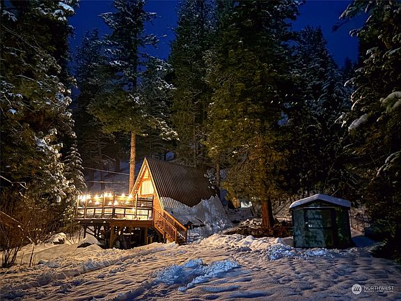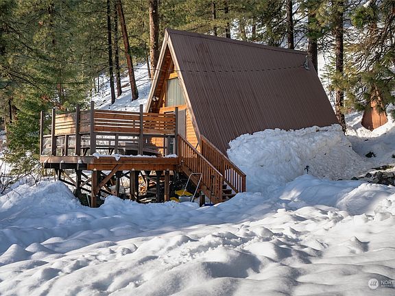 This charming cabin captures the essence of mountain living. With its classic A-frame design and a stunning wall of windows, you'll enjoy breathtaking mountain views and an abundance of natural light. The spacious deck is perfect for entertaining or simply soaking in the tranquility of the surroundings. The open floor plan seamlessly connects the living room, dining area, and kitchen. Main level features convenient bedroom and full bathroom, while upper level boasts cozy loft-style second bedroom. Community features include a play area, park, and scenic walking and hiking trails. Minutes from Leavenworth and Wenatchee, and less than three hours from Seattle. This home can be your full-time residence or your ultimate getaway cabin.
