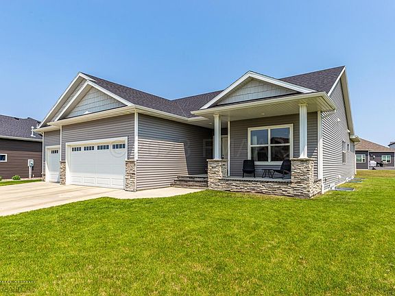 Step into this stylish & sophisticated fully finished rambler on a private loop in the heart of South Fargo! With easy access to Veteran's BLVD, 40th Ave & 32nd, parks & schools this stunning home offers functionality and convenience! Boasting 6 bedrooms, 3 bathrooms, 3 stall heated & finished garage, pie shaped large backyard with sprinkler System. Main floor 9' layout offers open concept Kitchen w/ gas cooking, quartz countertops, pantry & ss appliances. Master includes Tile shower, dual sinks, custom shelving & private toilet room. Front & Rear Foyers offer guests and family storage separation. Additional amenities of this main floor living home include washer/dryer, main floor laundry/sink, Kegerator in Lower Level Bar, sleek gas fireplace & Tile shower. Schedule your private tour!