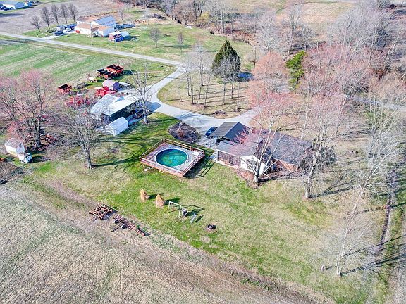 Look at this beautiful property!!! 2 Bedroom 1 Bath Brick Ranch on just over 20 acres with a Full Basement, Large Out Building and a Swimming Pool. This property offers very good tillable land as well as wildlife and peaceful tranquility. This hard to find property is a must see.