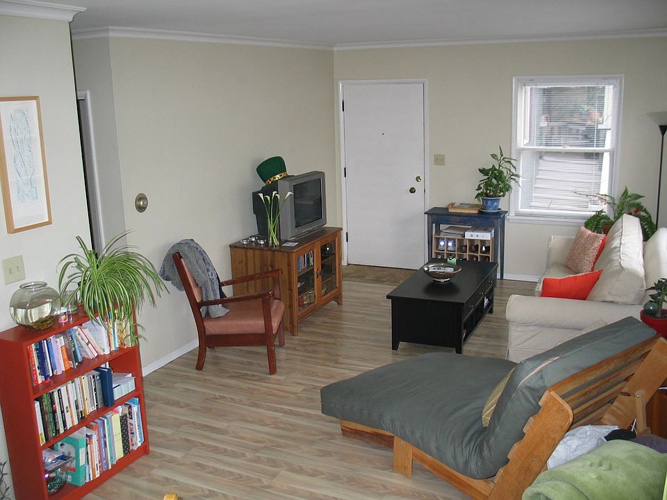 This property has been totally remodeled with hardwood floors in the living room and dining room. The bedrooms are carpeted with large closets. There is additional storage in the basement along with laundry facilities. The bathroom has a tub with full height tile tub surround and a pedestal sink. The unit has gas heat ( 4 year old furnace). There is a private back yard for all to use with room to garden. The kitchen has maple cabinets and dishwasher along with an eating peninsula. The apartment has lots of natural light with windows on the south, north and west sides. This is not your typical apartment. More charm than most. Must see to appreciate. Please, no smokers. Available now.Tenant pays $75/month for Water, sewage and garbage.