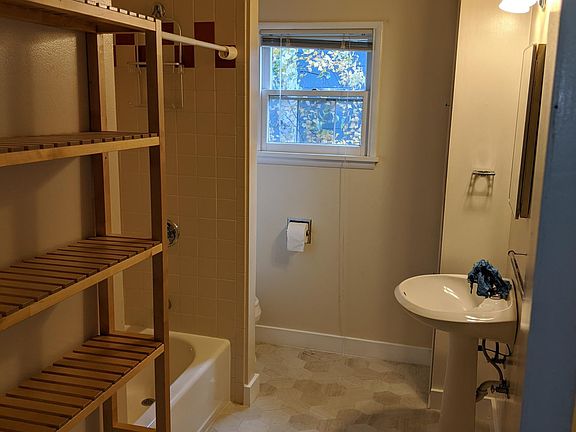 This 2 bedroom/1bath apartment is located on the top floor of a triplex. The apartment has hardwood floors in the living room and dining area. There is carpet in the bedrooms. Both bedrooms have large closets and there is an additional storage unit in the basement along with on site laundry facilities. The heat is gas, everything else is electric. A charge of $75/month for one person for water, sewer and garbage and $50/month in addition for each additional person. The kitchen has maple cabinets and there is a dishwasher. The unit gets lots of light and has an open floor plan. The bathroom has a pedestal sink and tub with a tile tub surround. Lots of charming features ...cove molding, archways. Not your cookie cutter apartment. There is both a front yard and back yard for all the tenants to use. If interested, gardening space is available. Duration of lease is flexible. Please no smokers. Available now
