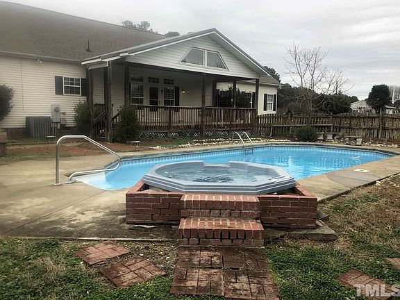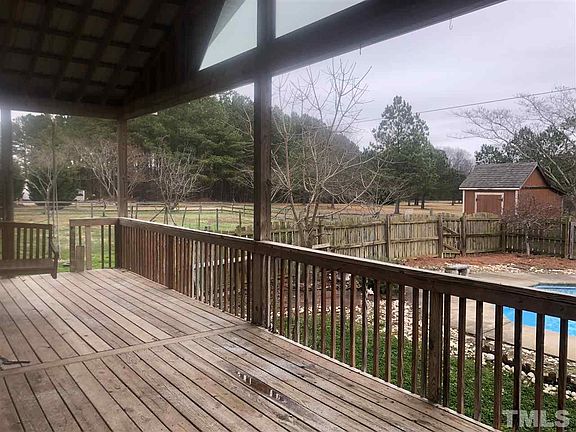 Beautifully designed modular home with 3 bedrooms and 2 bathrooms. Home was built in 2006 and sits on 1.7 acres of land, just 10 minutes from grocery store Lidl and 5 minutes from East Wake High School. Home has hardwood floors throughout with open kitchen/living room concept. An attached house garage is included along with additional living space above it. Enjoy your morning coffee on the back porch taking in the privacy and the beauty of a pool and patio!