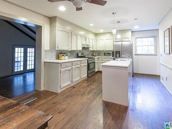 Mountain Brooks most convenient location! Tons of upgrades! Hardwoods refinished and new hardwoods in bedrooms and great room. Remodeled kitchen, quartz, designer back-splash and stainless steel appliance. Expanded living area with two additional french doors and a high efficiency Mr Slim HVAC unit in the large family room. New expansive covered patio and retaining wall with new sod. Completely painted interior and new roof with ridge vents.Two large bonus rooms in basement with closets, new carpet and paint. Beautiful large lot on quiet street just blocks Publix, Summit and Cahaba Village. SELLER IS OFFERING A $10,000 STIPEND TO REMOVE MANSARD ROOF EXT or ANY UPGREADES BUYERS SELECT.