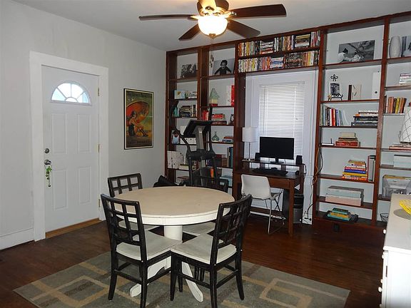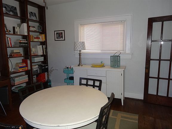 Absolutely adorable cottage style home with many updates! This 3 bedroom, 2 bath home has fresh interior paint and bright neutral décor. Charming kitchen with freshly painted white cabinetry, new countertop with refrigerator and gas range remaining. The living room is spacious with French doors into the large dining room with floor to ceiling built in storage shelves. Both bathrooms have newer vanities and the upstairs bathroom has the original pedestal style cast iron tub. The exterior has covered porch, newer vinyl siding, replacement windows with new roof to the decking in 2012, privacy fenced yard with 1 car detached garage. Immaculate.