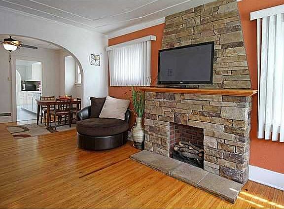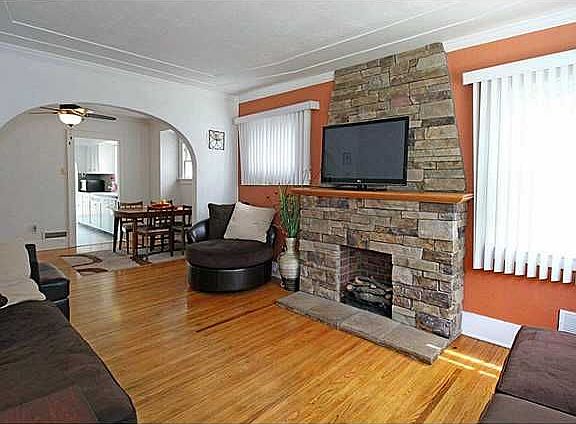 Beautiful, bright, 3-bedrm home w/MANY updates! Beautifully finished natural stone gas FP w/oak mantel, newly finished natural hardwood flrs, lead into the dining rm. Main flr has 2 good size bedrms w/hardwd flrs. The bathrm has been completely renovated. The full bsmnt includes a rec rm & laundry w/lots of storage! Entertain on the large deck that leads to the landscaped, fenced in yard & garage.