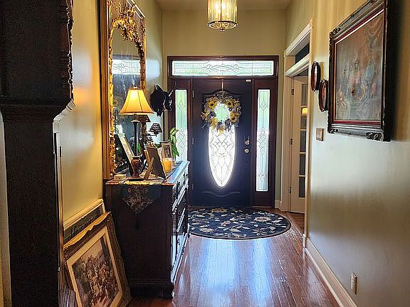 Gated street with only 7 custom homes on it! Welcoming manicured lawn, red metal roof, 3 large porches (1 screened) with ceiling fans, and a large entry into a beautiful foyer. This Home has 10 ft' ceilings, recessed lighting, oak floors, and huge rooms.