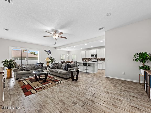 4BR/2BA home with 2 car garage on large corner lot with fully fenced in back yard (vinyl). Home built in 2020. Wood look tile plank flooring throughout living room, kitchen, hall and laundry. Kitchen with 42'' cabinets, tile back splash and Corian countertops overlooks huge family room in this open floor plan. Large master bedroom has walk in closet and spacious bathroom with two sinks and walk-in shower. Backyard has plenty of space for pool and more! Fantastic location near I-295, grocery store/restaurants and shopping. Yard is now being managed by landscape company.