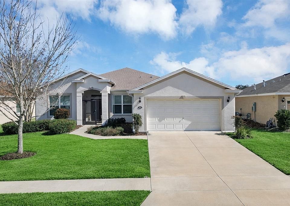 Welcome to a life that feels like vacation every day. Nestled in one of Central Florida’s most desirable resort-styled, guard-gated, active-adult golf communities, this beautiful low-maintenance 2,236 s.f. conditioned home with no carpets, only long ceramic tile flooring this 3-bedroom 2 bath w/flex room stucco home with over-sized 2 car+ over 600 s.f. garage built in 2019 This home delivers the comfort, quality, and freedom you’ve been dreaming of all without the resort price tag. Every detail has been thoughtfully cared for giving you peace of mind and more time to enjoy the things you love. Step inside open-concept home and feel the spacious flow of the 21x14 great room with high ceiling to enhance your sense of space is perfect for relaxed evenings or lively gatherings with friends. The kitchen is inspired with its stainless steel fridge and range, wide closet pantry pantry, and 2-seat bar-top island that’s made for morning coffee and good conversation. The split-bedroom layout offers privacy for you and your guests, while the owner’s suite invites you to unwind with dual vanities, a walk-in shower, private toilet and over-sized walk-in closet. The split bedroom floor plan provides the privacy you need. Step out on to your 17x15 covered & screened lanai overlooking a deep backyard and breathe in the tranquility of surrounding greenery while sipping your morning coffee or afternoon margarita or grilling out with your natural gas grille that never needs re-filling, With its energy efficient foam-filled insulated block and stucco construction, high elevation, and insurance savings for wind and flood protection, this home offers strength and serenity in equal measure. But what truly sets this home apart is the lifestyle. Arlington Ridge is more than a community it’s a way of living. Spend your mornings on the championship 18-hole golf course, your afternoons at the heated pools or fitness center, and your evenings with neighbors at the on-site restaurant, tavern, or free movie theater. Enjoy tennis, pickleball, billiards, or a peaceful stroll along golf cart-friendly streets lined with sidewalks and manicured landscapes. And with a remarkably low HOA of just $127/month, you’ll enjoy lawn care, high-speed internet, Wi-Fi, and over 200 cable channels included. With hardly any yardwork to worry about, What will you do with all your free time? Conveniently located near shopping, dining, medical services, and a short drive to Orlando’s attractions and both coasts’ beaches, this home blends resort-style living with everyday practicality. Don’t just buy a home, embrace the lifestyle you worked hard for and deserve. Schedule your private showing today and start living your best Florida life at Arlington Ridge. Retirement is not the end, it’s a new chapter just beginning.