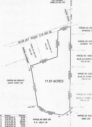 High and dry with lots of nice trees. Very private location back line is run of the branch. There is a deep well and power pole - no septic tank. Ideal hunting tract.