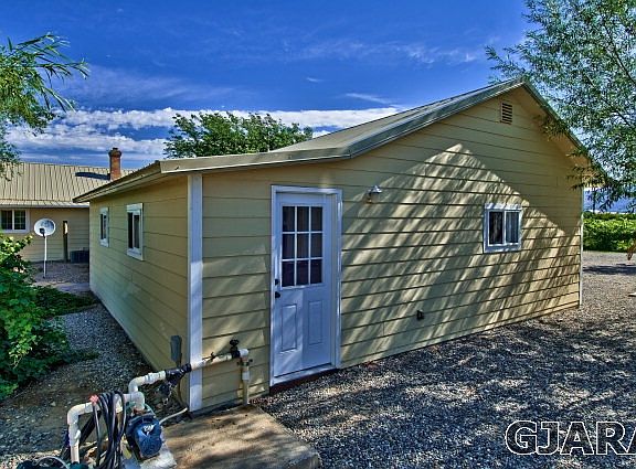 Nestled between the Palisade fruit orchards and the vineyards. This unique property has a views of all the surrounding mountains. Don't miss this charming property! The house has been totally redone with new kitchen, new bathrooms, new electrical and plumbing. Situated on over 1 acre this property has a shop/artist studio that is 50x24 and a loft area above. If you have been looking for a GEM in Palisade, you won't want to miss this one.