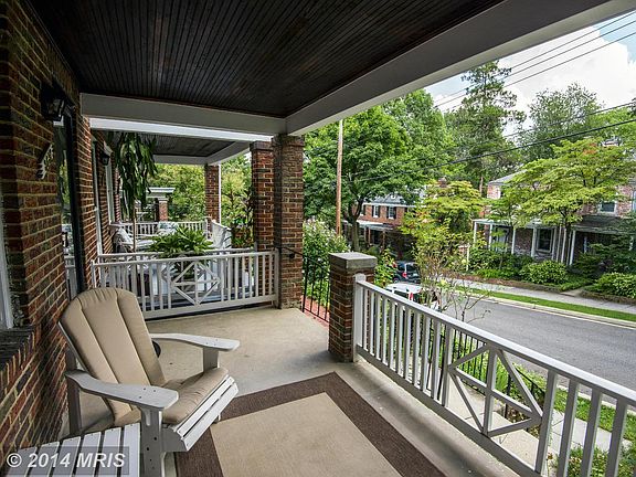 Thoughtfully-renovated 1939 colonial row home w/ 3 lvls, 3BRs, 2 full BAs, and main-level half-bath. Beautiful granite/SS KIT with 42-inch cabinets, updated baths, LL rec room. Other amenities incl central air, HDWD, dec FPLC, high ceilings/many original details. Inviting front porch and large rear deck, plus off-street parking and 1-car garage (now storage) all on quiet, one-block long street.
