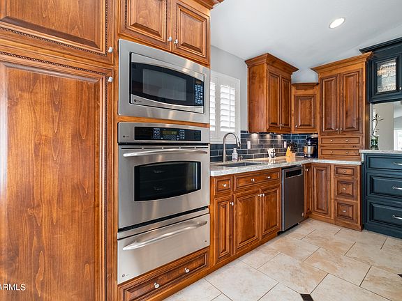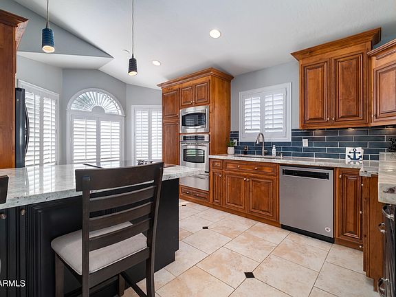 $$$$PRICE DROP$$$$!! Slice of Paradise on the 4th Green of Red Mountain Ranch Pete Dye Golf Course! NE Mesa Living at its finest. You are greeted by a Gated Private Entry Courtyard which allows you to extend your outdoor living creating multiple outdoor areas of enjoyment. This Beautiful Home highlights features found in a Custom Home. This is a ''One of A Kind'' Gourmet Style Kitchen with Upgraded 42'' Cabinets Crown molding, double Ebony Island's with cooktop/ deep pot drawers, tons of storage and bubble glass showcase cabinet! All NEW updated light granite and dramatic oversized subway backsplash throughout kitchen and laundry. Shutters adorn the kitchen with Stainless Steel appliances and deep single sink! Neutral Tile and Travertine flooring throughout main Neutral carpet in Owner Suite. Split Owner Suite with double door entry vaulted ceilings/pot shelves and multiple sweeping views of the backyard retreat with Golf Course backdrop! SPA experience awaits in large Soaking Tub and Travertine Shower! Executive Dual Vanity and Custom Closet System! Secondary Bedrooms spacious with vaulted ceilings/pot shelves functional study nook and great closet storage as well as extended hall closet storage. Hall bath with barn door style glass enclosure is a zero step with linear drain, tile surround and new executive height vanity with thoughtful storage.
