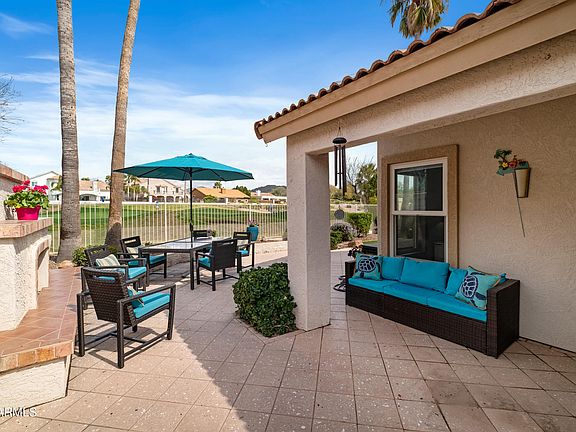 The living space features lots of light, vaulted ceilings, Fireplace built in storage and access to outdoor living! The Backyard Retreat "grounded" with high end Shellock pavers bringing the Beach to the Desert making it perfect for early morning coffee or to relax at the end of the day around the Outdoor Fireplace after watching the Golfers "putt" on the 4th Hole Green.. This is a slice of Paradise. Distant Red Mountain Views. NEW HVAC, Tankless Hot Water Heater, Whole House Filtration, Epoxy Garage Floors, Newer East Windows Newer Sliders. Many Upgrades!!