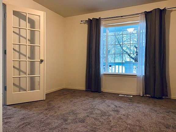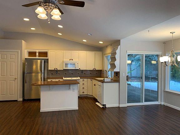 This is a beautiful single-level house in a peaceful neighborhood located in central Coeur d'Alene. The house backs up to the woods, and there are no rear neighbors. The backyard is fully landscaped with an automatic watering system and is low maintenance. There are flowering trees in the front. The large master bedroom has two walk-in closets and has a split bathroom. The second bedroom has an additional smaller walk-in closet. The third bedroom has glass French doors and makes a great office/library. The kitchen and master bathroom have Corian countertops. There is a separate laundry room with washer and dryer hookups. The house has central heating and air conditioning. Tenant pays all utilities. The house is currently occupied and will be available for viewing starting July 3rd. (Please do not disturb current tenants.) First month's rent and a deposit of $2,250 is required to move in. Tenant pays for all utilities. Flat fee of $125 for water/sewer/garbage (not included in rental amount).