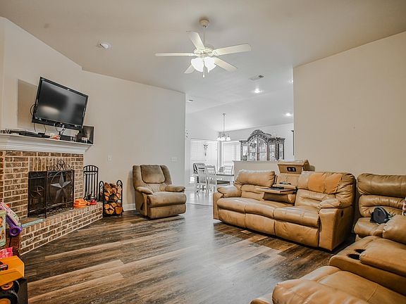 Discover this delightful home nestled in the highly desirable Frenship ISD! This inviting 3-bedroom, 2-bathroom, 2-car garage property is situated in a family-friendly community with fantastic curb appeal, featuring a well-maintained lawn and a welcoming front porch. Inside, you'll enjoy a spacious, open floor plan with soaring ceilings, a cozy corner fireplace, and plenty of room for family gatherings or entertaining guests. The kitchen is a chef's dream, offering generous counter space, stainless steel appliances, and elegant granite countertops, seamlessly connecting to the dining area. The private primary suite is a peaceful retreat, complete with a large walk-in shower, soaking tub, and dual closets for ample storage. Step outside to the backyard, where you'll find a covered patio perfect for entertaining or unwinding on cool West Texas evenings, along with a large storage shed for added convenience. Residents of this wonderful neighborhood also have access to a community pool, park, and sports courts, including tennis, basketball, and pickleball, along with a planned walking track for future enjoyment.