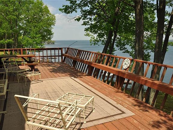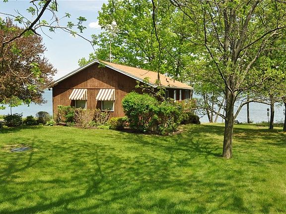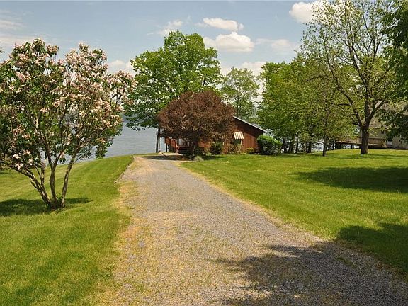 This charming 3 bd/2ba lakeside home rests neatly on a 5+ acre lot at the end of a quiet road on the west side of Seneca Lake. Walk in from the driveway and you're welcomed into a cozy living area with a wood burning fire place with custom mantelpiece. The country kitchen features a breakfast bar and wooden cabinetry. Hardwood floors throughout the living and dining areas that both look out over the lake. Sliding glass doors lead to the elevated deck looking out over 118 feet of shoreline. The finished basement features the third bedroom w/ legal egress as well as an area that can be cordoned off to establish another sleeping area. Basement also features a wood stove and large utility/storage room, walk out through sliding doors to covered patio. Recently Reduced - make this your home!