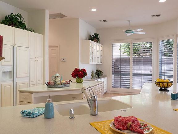 Welcome home to Sun City Del Webb w/ 2 championship golf courses,18 hole putt-putt,3 clubhouses including state of the art fitness center,multiple restaurants,meeting rooms,library,ballroom,billards room,resort swimming pools,private RV lot,tennis courts,pickle ball,bocce ball & 80+clubs & social groups. This newly painted popular St. Tropez model is an entertainers delight w/ it's light & bright open floor plan & chef's style kitchen. Enjoy the East facing covered back patio w/ no maintenance yard. Featuring Plantation Shutters,high ceilings,two master suites,3rd bedroom w/ office,breakfast nook w/ office area & a 3 car garage w/ workspace. Drive your golf cart thru the private gate to the local shopping center w/ restaurants,coffee shop and more. This is the perfect Desert lifestyle w/ low HOA's,gaurd gated & onsite security. Whether it's ceramics,billards,golf,cards or meeting people w/ similar interests,the opportunities are endless at Sun City! Lease opportunity available.