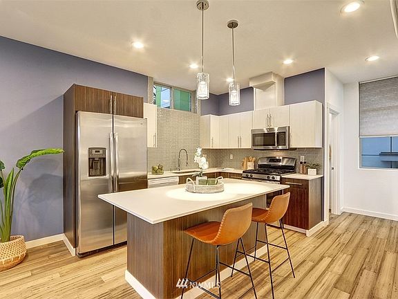 Well-designed, 2 bed plus den/1.5 bath 2018 4-Star Built Green modern townhome with refined contemporary touches is tucked away in a quiet Mt. Baker neighborhood near light rail and shopping. Comfortable, air-conditioned open-floor plan with west-facing large Atrium windows, hardwood, carpet and tile flooring. Open concept kitchen/dining area with quartz countertops, contemporary gas stovetop. plenty of storage. This townhome has a balcony off the primary room, an attached one-car garage and a spacious rooftop deck that affords incredible views-perfect for gathering and entertainment. Enjoy walking to groceries, light rail, Horton Hill Corridor, Lake People (Xacua'bs) Park, and the many waterfront activities along Lake Washington Boulevard.