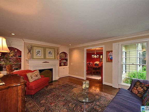 You wonâEUR(tm)t find a more picturesque property in all of Mountain Brook! Enjoy a vast, beautifully wooded lot and the charming home that is situated on it. This four (or five) bedroom, three-bathroom home sits far off the road, just behind a quiet stream. The backyard also offers plenty of space (and a playhouse) for playtime or a cookout on the gigantic brick-laden terrace. ItâEUR(tm)s a fantastic home for family living, as well as entertaining. Features include hardwood floors, crown moulding, recessed lighting, exposed wooden beams, French doors, plantation shutters and much more. The kitchen has granite countertops, stainless appliances, plenty of cabinets and is open to the breakfast area. The cozy den has a stone fireplace, a wet bar, built-in cabinets and shelving and French doors to the outdoor patio. Fabulous master suite with a large walk-in closet. Media/Playroom located off kitchen also has a wet bar. Two-car garage with shelving. Dont miss a chance to own this fabulous home!