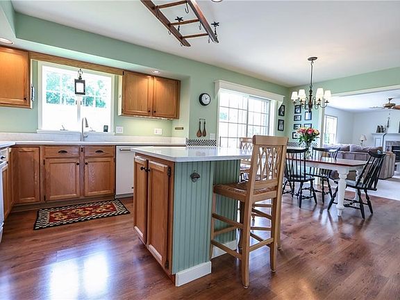 Immaculate home in desirable neighborhood with great floor plan and views of beautiful Canandaigua Lake! Just mere mins. to public beach & boating! Canandaigua School district! Eat-in kitchen with breakfast bar island and sliders opening to deck and patio leading up to views of the lake. 4 Good-sized bedrooms. 1st Floor Laundry conveniently located off kitchen. Finished walk-out basement offers a light and bright space with lots more square footage and the possibility of another bath and another large unfinished storage area. (Please note the lantern-type light fixture above kitchen sink is being taken by sellers)