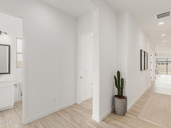 Blandford Home in new gated community w HUGE finance Incentive thru preferred lenders. Front landscaped, Paver front driveway leads you to an iron front door. Inside you'll find wood look floor tile throughout. NO carpet! Beautiful under-lit white cabinets thick edge kitchen quartz countertops in kitchen. Big ceiling fans, gas appliances and heating and a gas stub in the rear yard for future BBQ or firepit service. Freestanding tub and thick glass frameless shower enclosure highlight the Primary bathroom. Huge wall of glass to rear patio and nice size backyard. Rare opportunity for a 'CLOSE-IN' location for a NEW home in a gated community. Taxes estimated.