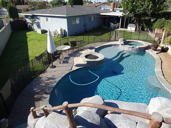 A must see!! Beautiful 5 bedroom, 3 bathroom, eighteen hundred sq ft of living area, with 2 master suites each with their own bath. Drive thru garage leads to courtyard. Located at the end of a cul-de-sac in a quite desirable neighborhood conveniently located near schools, shopping, and restaurants. Orange Unified School District provides California Distinguished Schools with El Modena High School and McPherson Magnet both just across the street. Chapman University only 3 miles away. This charming home offers a large lot with custom built pool featuring LED lighting, grotto, waterfall, slide, and fire pit - perfect for the kids and entertainment! Must see to appreciate, make an offer this won’t last long!!