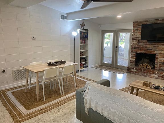 "Due West" is a private 1 story home located in Hernando Beach on the Nature Coast of Florida. This home is situated on a large lot on a canal that leads to the Gulf of Mexico; just 10 minutes from the ever popular Weeki Wachee springs. The details in this house are endless with a private floating dock, 120+ ft. of seawall on a deep water canal that connects to a small canal on the side on the home visible from the master suite. (Water surrounds two sides of the home.) Recently completely remodeled with all new appliances including large washer and dryer. The floors are newly polished, original Terrazzo floors which gives this home a true "beachy" vibe. The home sleeps six comfortably with a master suite that includes a King size bed and a second bedroom with two sets of bunkbeds. It also has two full size bathrooms with new sinks and showers. The master includes a walk in closet and television. "Due West" is only a 10 minute boat ride to the Gulf of Mexico where you can enjoy stunning sunsets as well as some of the best fishing and wildlife watching on the coast. Enjoy quiet nights on the sofas on the large screened in backporch that includes a television and surround sound throughout the porch and interior of the home. You can also enjoy the indoor fireplace, large grassy backyard, four kayaks to use at your leisure and a newly built outdoor shower. This home also has a one car garage. This property is available for a long term rental (3-5 months depending on need) and is available November 1, 2020- March 31, 2021. It is turnkey which includes: electric, trash service, water, alarm system, WIFI and weekly yard service. A $150.00 non refundable cleaning fee is required. This rental requires 50% of rental at lease signing. NO PETS, NO SMOKING, NO VAPING.