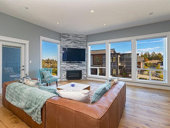 OPEN HOUSE SAT/SUN, NOVEMBER 15TH - 1-3PM, 16TH - 2:30-4PM. Elevation Pointe is a quality luxury subdivision in Colwood with Mountain & Ocean views, located close to Royal Bay, Olympic View & Colwood Lagoon. This modern contemporary open-concept executive home features expansive floor-to-ceiling windows, white oak engineered floors, chef’s kitchen, granite surfaces, Bespoke cabinetry, large island, premium appliances, dual ovens, warming drawer & gas cooktop. Open dining/living areas anchored by a striking stone-clad gas F/P, automated blinds, large office with built-ins. Upstairs has 3 bdrms, main bath & laundry, primary bedrm has it's own terrace, a spa-inspired ensuite & large walk-in closet. The lower level hosts a legal self-contained one-bedroom suite with own hydro meter, laundry & private patio, great rental income or extended family. Constructed with silent floors & rebar-reinforced. Double garage, heat pump, backs onto a private green space. Priced well below assessed value.