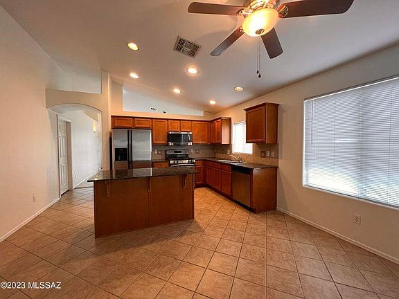 4bdr/2ba home minutes from Ajo/Kinney! Fabulous floorplan offering formal living room/dining room, open bright kitchen w/granite counters, island and eat-in dining area. Family room features high ceilings and gas fireplace! Spacious primary bedroom w/ensuite has both walk-in shower and garden tub. Split bedroom floor plan, jack-jill bath, two car garage, huge backyard and more