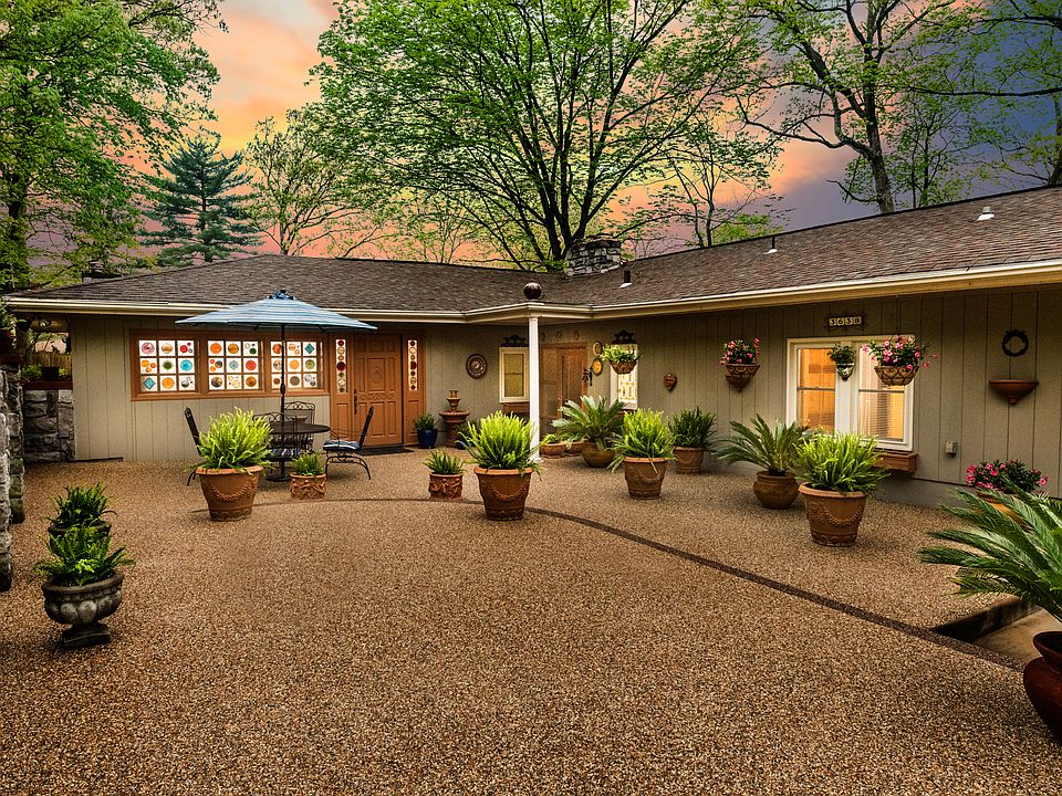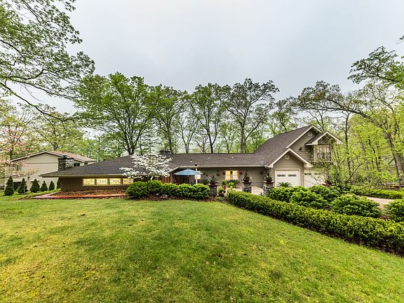 You will love this prestigous, unique Artisan home on .90 acre lake view lot. Pride of ownership shows in this 3 bed, 2 bath sprawling ranch home. Kitchen features a double oven, granite countertops, & custom built hickory cabinets. Updated baths, heated porcelain floors, amazing lake views from living room - dining room combo, beautiful new patio surrounded by English style gardens, 2 fireplaces, lovely stained glass, 2 car garage, and a wonderful workshop are just a few of the extras in this lake house. Lake beach is directly across the street!