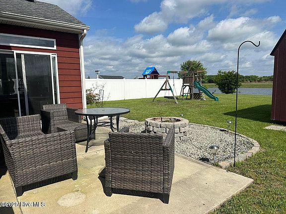 Come enjoy the gorgeous pond views from this amazing two story home! New washer put in 2024, new refrigerator in 2022, new light fixtures throughout the home put in 2023, home interior was painted upstairs and down in 2022, new tile has been put in the bathrooms, and all carpet upstairs is new as of 2022 as well! The back patio has a warm and inviting feel made all the better by the stone fire pit and, again, those views of the pond! Home also boasts a shed and playground in the backyard!