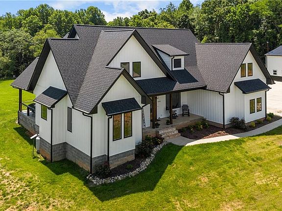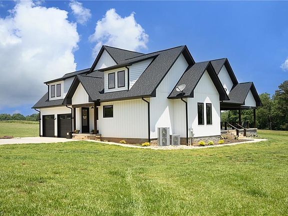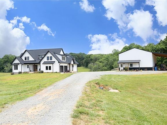 Price improvement! Beautiful custom built home completed in 2022, surrounded by 12 acres of nature. Located in the heart of the Yadkin Valley Wine Region. Small stream runs through property and refreshes stocked fish pond at rear of property. 4 Bedrooms with lower level Primary BR; 3.5 baths; wonderful kitchen w/ large island topped with leather textured granite; surrounding custom cabinets with contrasting quartz counters. 9' ceilings; covered porches; and custom features throughout. Separate 1500 sq ft detached workshop has separate septic system with full bath. Schedule your showing now.!