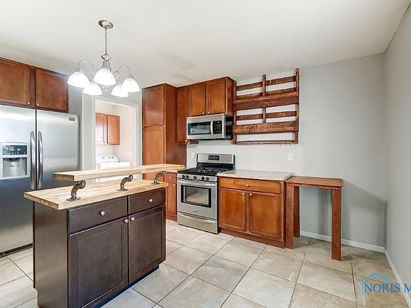 Open and updated one-floor living Major remodel in 2011 and new furnace and a/c in 2018. Modern eat-in kitchen with butcher block island, pantry, breakfast bar, stainless steel appliances, wine rack and granite-look counters. Kitchen opens to living room perfect for entertaining. Fresh décor throughout. Double sinks in updated bath. Large newer 2 car garage and fenced yard. Laundry room with storage and washer and dryer included. Save on expenses with one-year home warranty included. Truly move-in condition Seller has an inactive Ohio real estate license